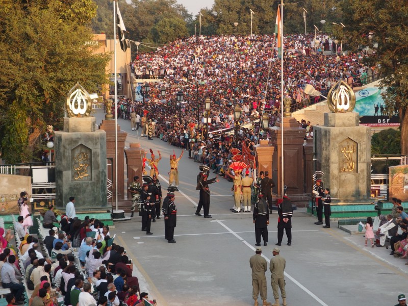 Each day hundreds of people come to Wagah, a small village on the border between Pakistan and India, to the attend flag lowering known as the “Beating Retreat” ceremony.