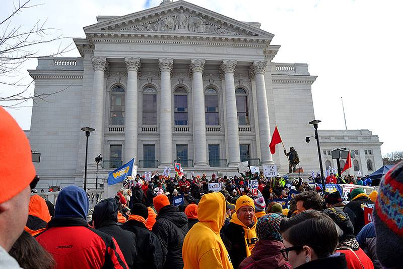 Another rally is scheduled Saturday. Protesters will march from the University of Wisconsin campus to the State Capitol.