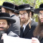 - Washington, D.C. — A line of Hasidic Jewish protestors hold a banner against same-sex marriage as the court hears arguments. (Photo Credit: Anthony J. Rivera)