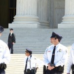 - Washington, D.C. — Supreme Court Police stand before hundreds of protestors as justices listen to oral arguments on same-sex marriage. (Photo Credit: Anthony J Rivera)