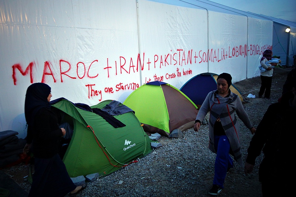 There are still some 12,000 people here waiting to cross at the Greek border village of Idomeni. Days have been turning to weeks as entire families – mostly from Syria and Iraq – demonstrate in front of a line of Greek riot police standing between the migrants and Macedonia.