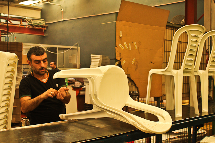 “As you see, the line of chairs, we produce more than 2,000 pieces a day,” says Yehuda Cohen, the CEO of Lipski, during a tour of a factory run by the Israeli company that produces plastic products. The factory is located around 10 miles inside the Palestinian West Bank, but labels on the products state ‘Made in Israel.’