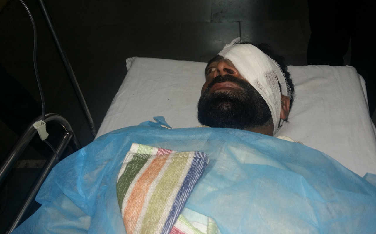 Showkat Lone, a resident of Hajin Village in north Kashmir, was struck by pellets while working in his orchard.