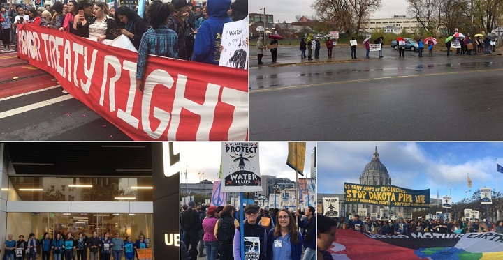 Many of the events were held at Army Corps of Engineers District offices around the country – where protesters called for a full rejection of the pipeline. Other actions targeted banks involved in financing the project, and energy companies with a stake in what indigenous opponents call the “black snake.”
